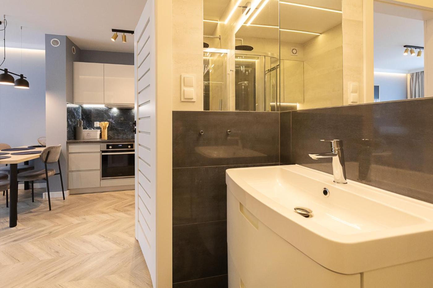 Apartament z 1 sypialnią i balkonem. Boasting a private entrance, this apartment features 1 living room, 1 separate bedroom and 1 bathroom with a shower and a hairdryer. Guests can make meals in the kitchenette that has a stovetop, a refrigerator, a dishwasher and kitchenware. This apartment has a washing machine, a tea and coffee maker, a flat-screen TV with streaming services and a balcony. The unit has 2 beds. Apartament - 4 osobowy. Powierzchnia pokoju ok.: 44 mkw. ;
